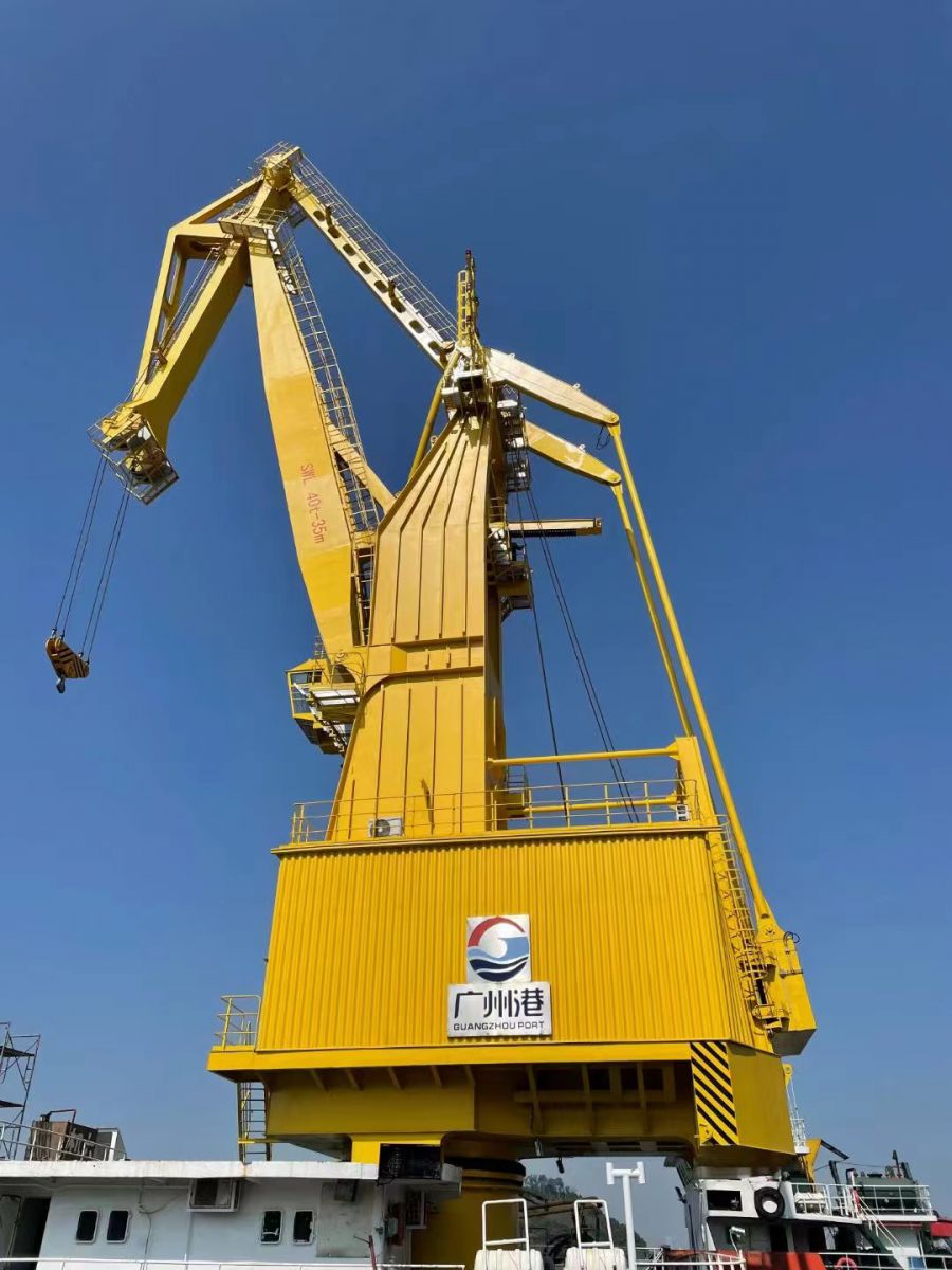 四連桿浮式起重機(jī)為散貨裝卸設(shè)備??晒┖8刍蚝痈鄣?.5萬噸級碼頭用25噸效率抓斗進(jìn)行散料裝卸作業(yè),經(jīng)過換裝25噸吊鉤,也可進(jìn)行雜貨吊裝作業(yè)。